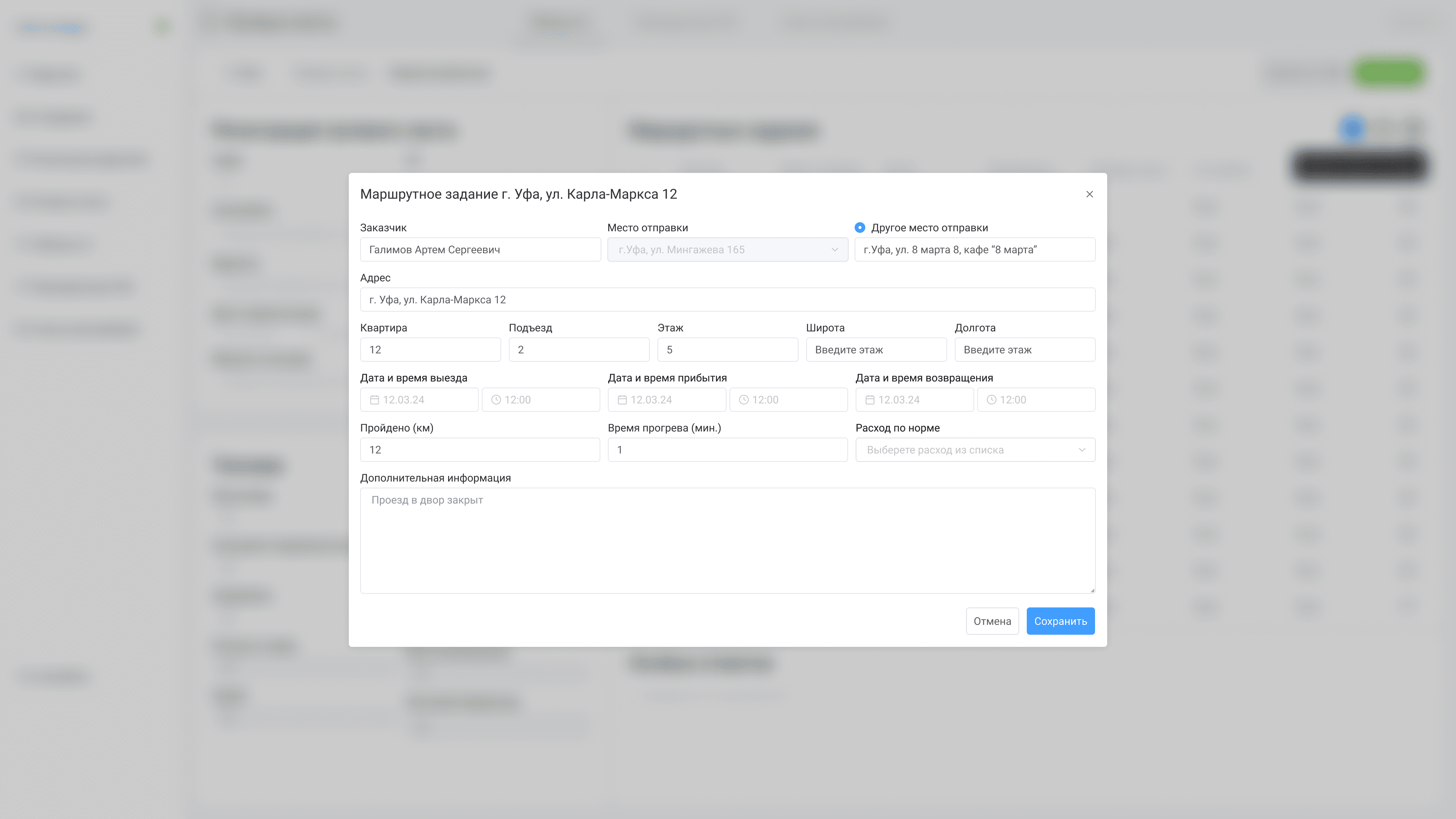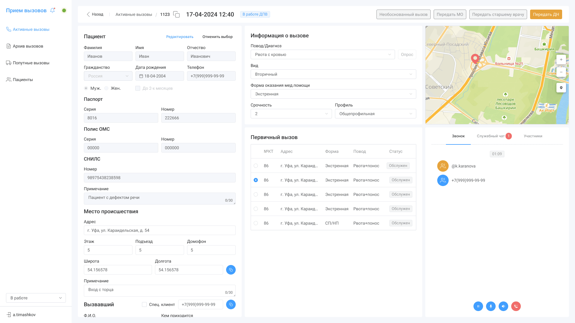 Выезд на зарегистрированный вызов с полным заданием от диспетчера