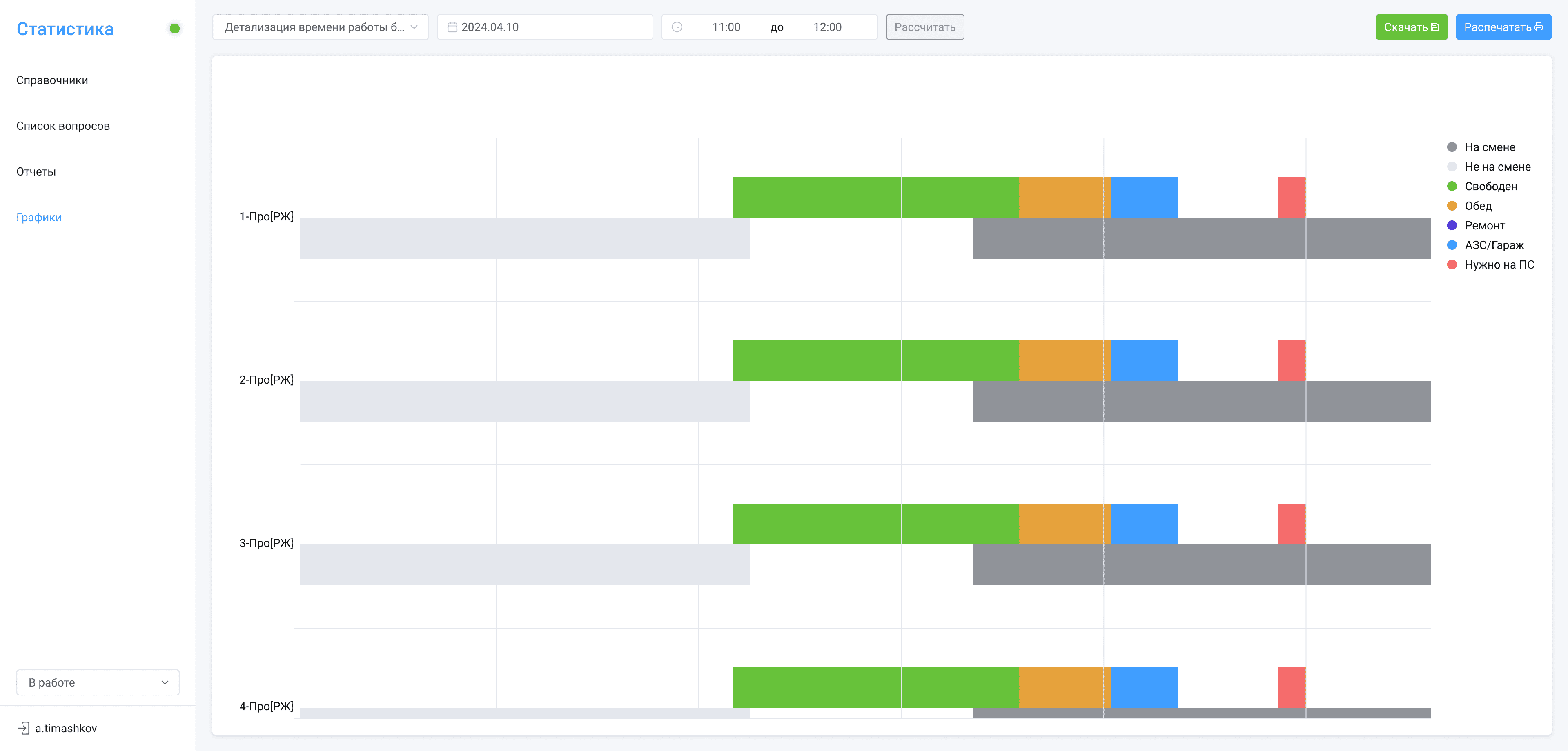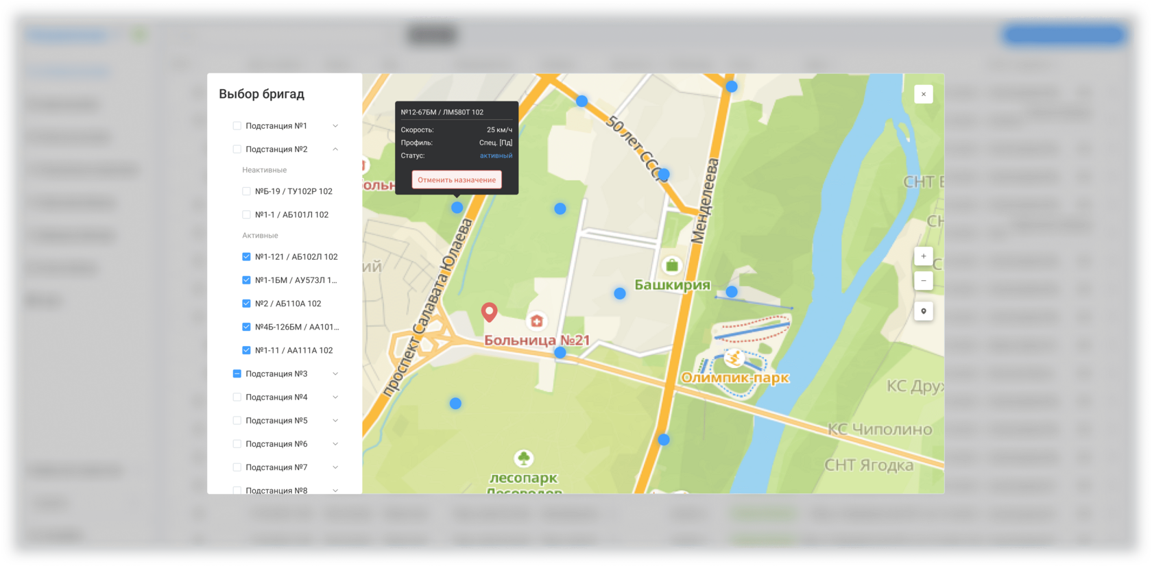 Контроль текущей оперативной обстановки по выбранному набору подразделений